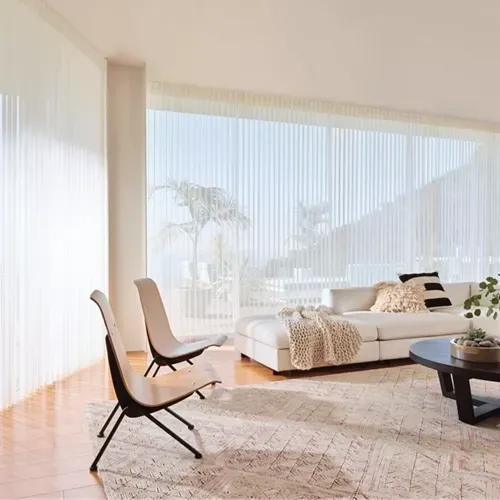 Discover the transformative elegance of Hunter Douglas’ Luminette Privacy Sheers. These stunning vertical blinds combine the softness of sheer fabric with the light control capabilities of traditional blinds, creating a harmonious balance of style and functionality. Elevate your living spaces with Luminette, where timeless beauty and innovative design seamlessly merge to enhance privacy and natural light control in every room.