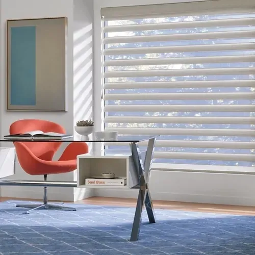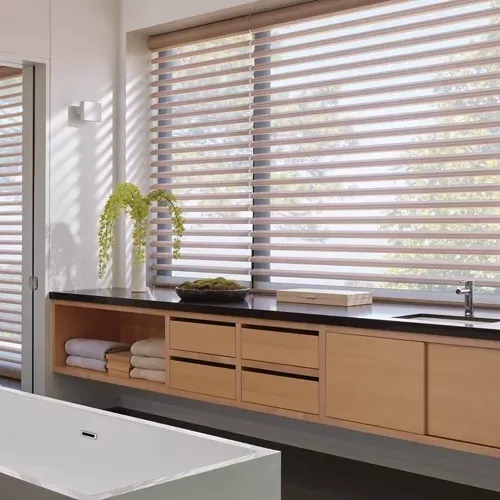 The Pirouette window blinds from Hunter Douglas, where beauty meets innovation. Experience the perfect balance of light and privacy as these blinds elegantly filter sunlight through their soft, fabric vanes. With their revolutionary design and exquisite craftsmanship, Pirouette blinds redefine sophistication while offering unmatched versatility for any living space.