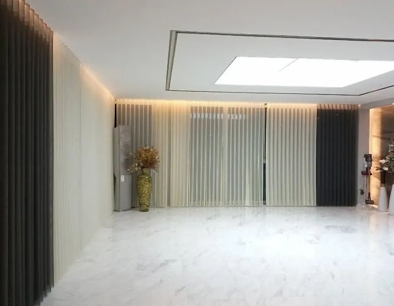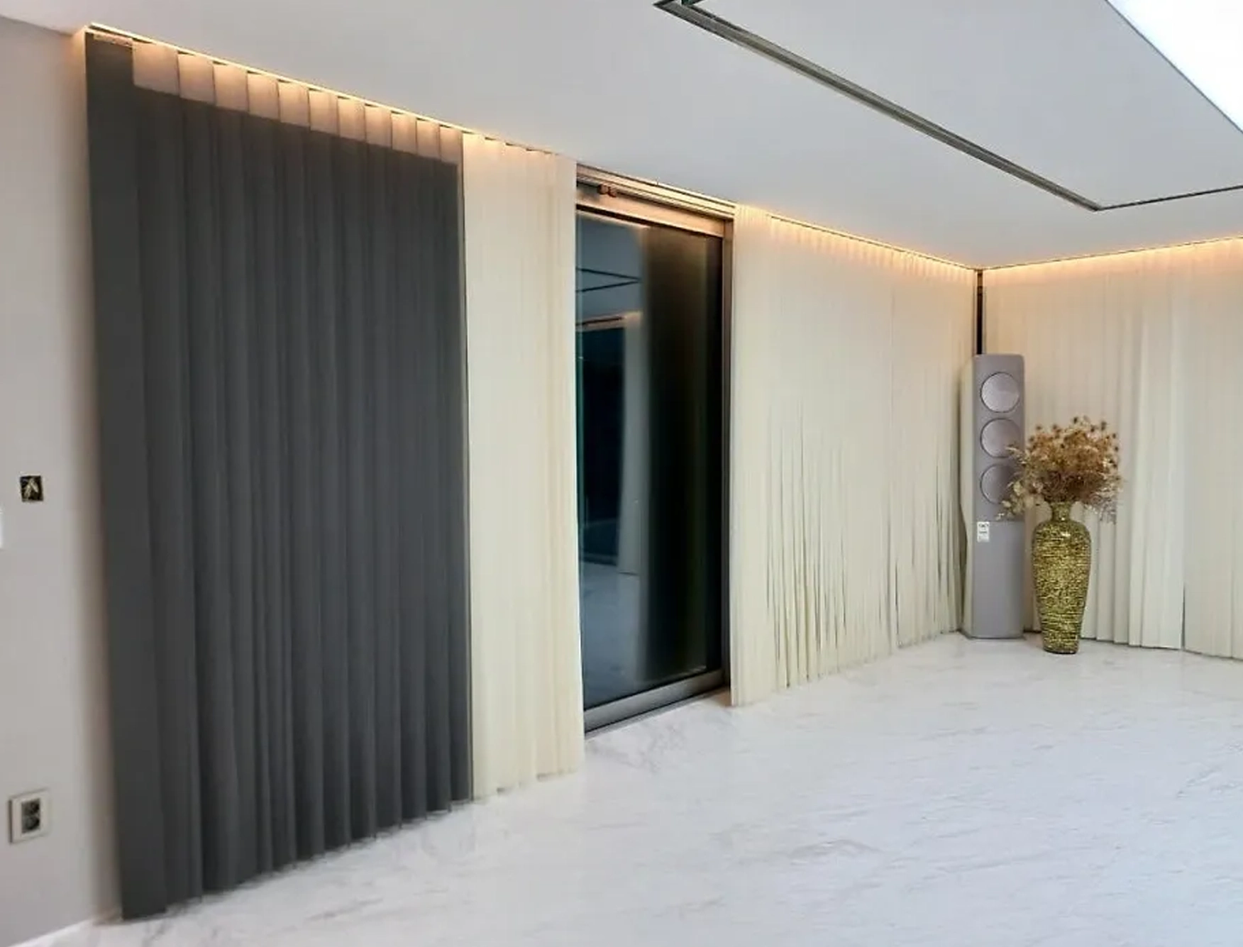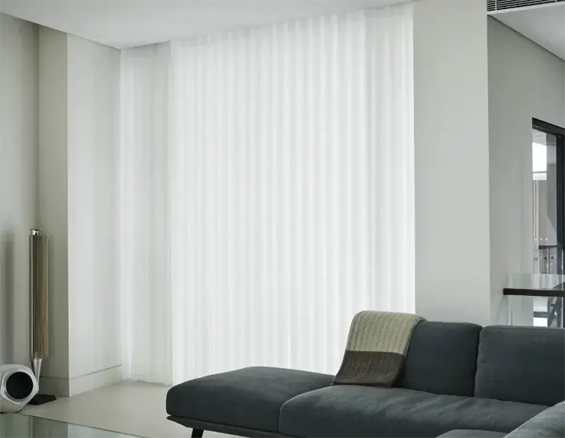 A revolutionary vertical window solution that seamlessly blends sheer and room-darkening fabrics into single strips, creating a continuous and elegant aesthetic. Our innovative design provides both privacy and natural light control with unparalleled sophistication. Experience the perfect fusion of form and function with Uniglide.